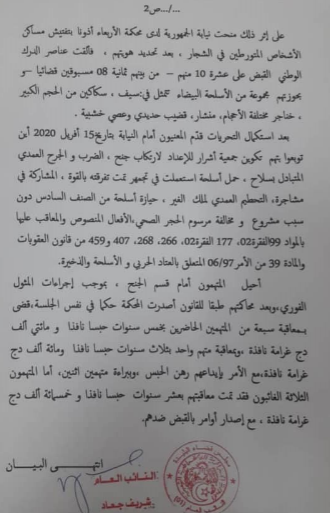 هذا وقد اصدرت محكمة البليدة حكما لـ7 متهمين بالحبس النافذ 5 سنوات وغرامية مالية قدرها 100 ألف دينار.