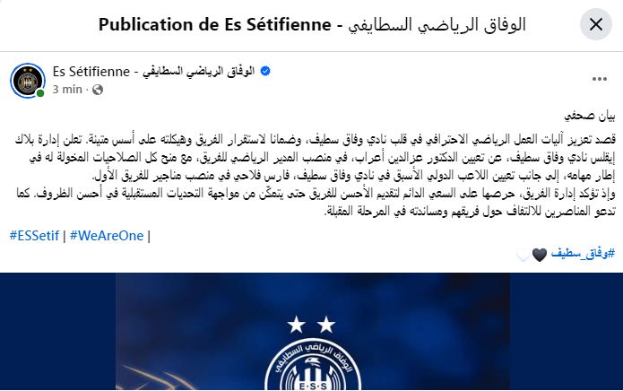 وأوضحت إدارة وفاق سطيف، أن خطوة الاستعانة بالثنائية. جاءت في إطار تعزيز آليات العمل الرياضي الاحترافي في قلب النادي. وضمانا لاستقرار الفريق وهيكلته على أسس متينة.