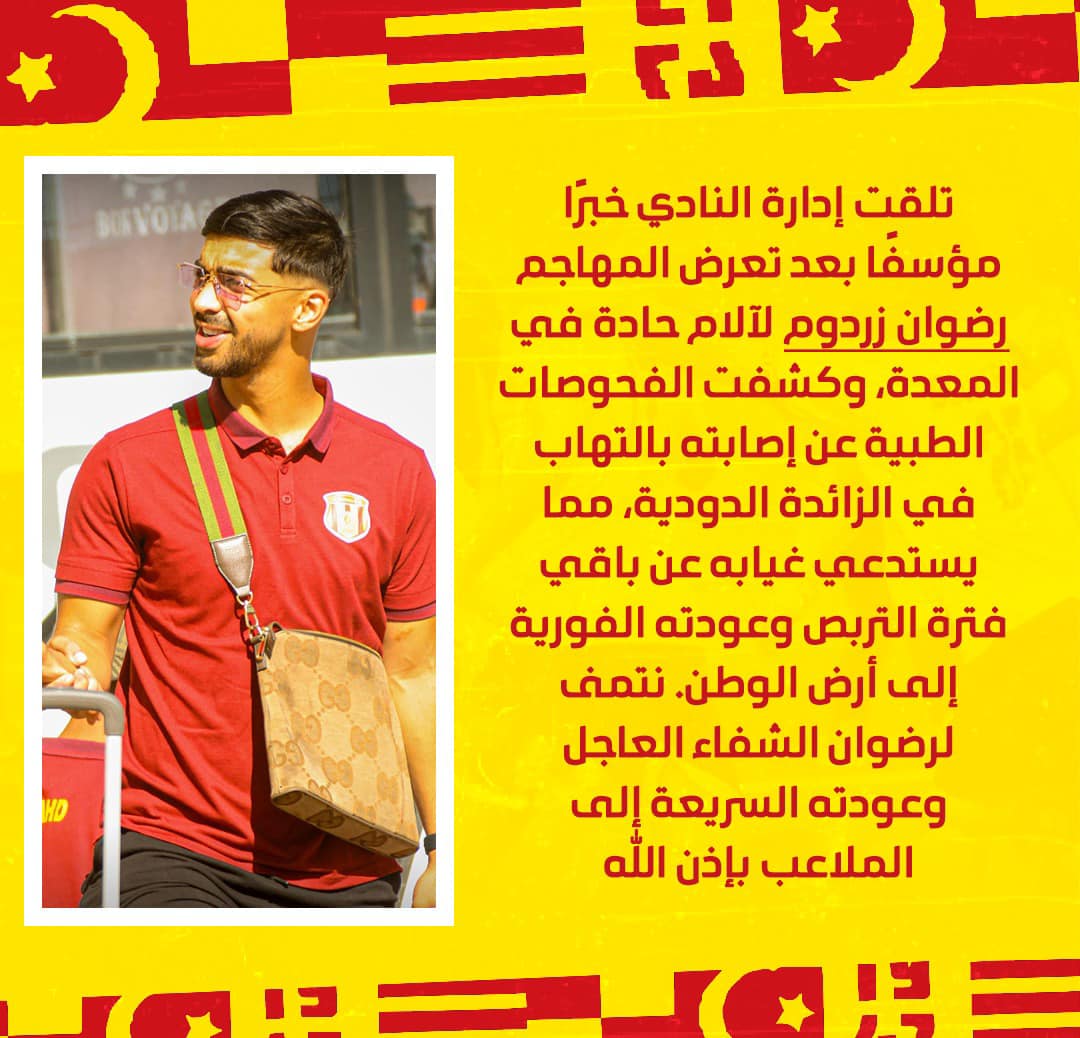 إدارة النصرية تعلن عن إصابة زردوم بوعكة صحية