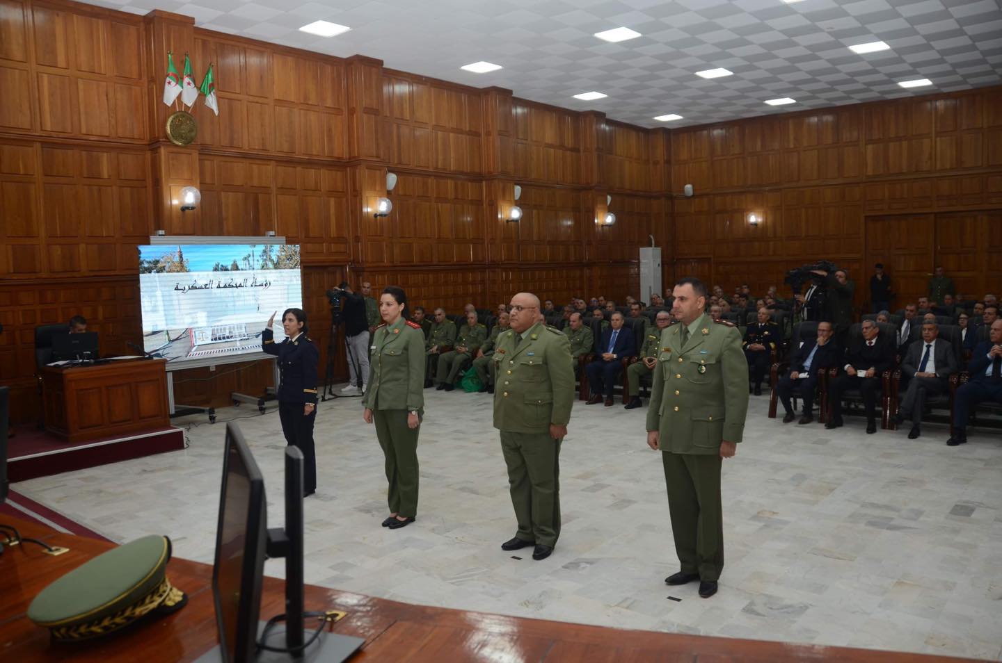 وبعدها شرع القضاة المساعدين العسكريين المعينين بالمحكمة العسكرية بالبليدة في أداء اليمين القانونية على تنفيذ المهام المسندة إليهم بعناية و إخلاص وفقا لمبادئ العدالة والمساواة، والحفاظ على سرية المداولات.