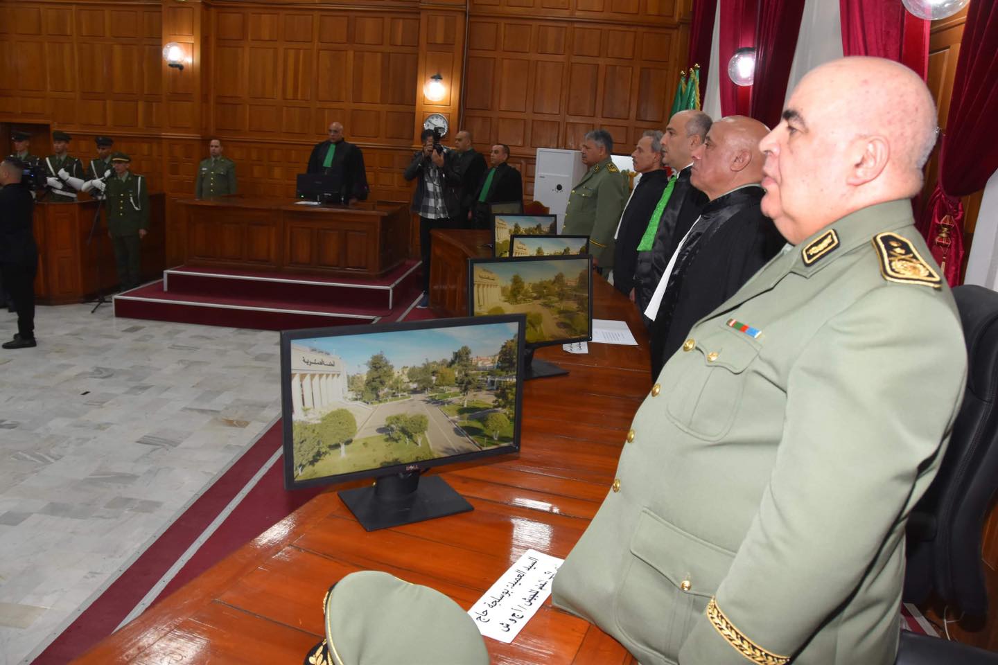 وحضر مراسيم الإفتتاح كل من رئيس دائرة التنظيم والإمداد لأركان الجيش الوطني الشعبي. وكذا المراقب العام للجيش ومدير القضاء العسكري لوزارة الدفاع الوطني. والسادة الرئيس الأول للمحكمة العليا، النائب العام للمحكمة العليا. بالإضافة إلى محافظ الدولة لدى مجلس الدولة، المدير العام للشؤون القضائية والقانونية بوزارة العدل مدير المدرسة العليا للقضاء. وأيضا رئيسة السلطة العليا للشفافية والوقاية من الفساد ومكافحته، والي ولاية البليدة وإطارات من الناحية.