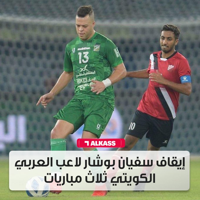 قررت لجنة الانضباط التابعة للاتحاد الآسيوي لكرة القدم توقيف المدافع الجزائري المحترف في نادي العربي الكويتي سفيان بوشار لـ 3 مباريات كاملة.