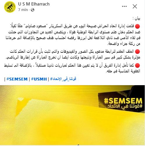 اتحاد الحراش يقدم ملفا ثقيلا ضد الحكم دخان