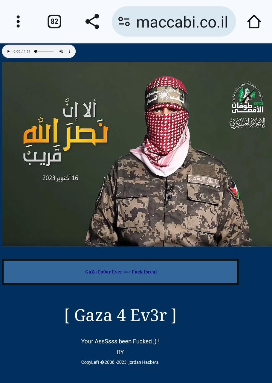 تعرض الموقع الالكتروني الرسمي لفريق مكابي تل أبيب لكرة السلة للاختراق من قبل قراصنة لفترة من الزمن.