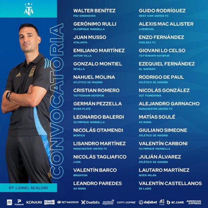 وكشف الإعلام الأرجنتيني عن عدم استدعاء سكالوني، لنجمه الأول في المنتخب ميسي، بسبب عدم جاهزيته إثر الإصابة التي تعرض لها خلال مشاركته في بطولة كوبا أميركا.