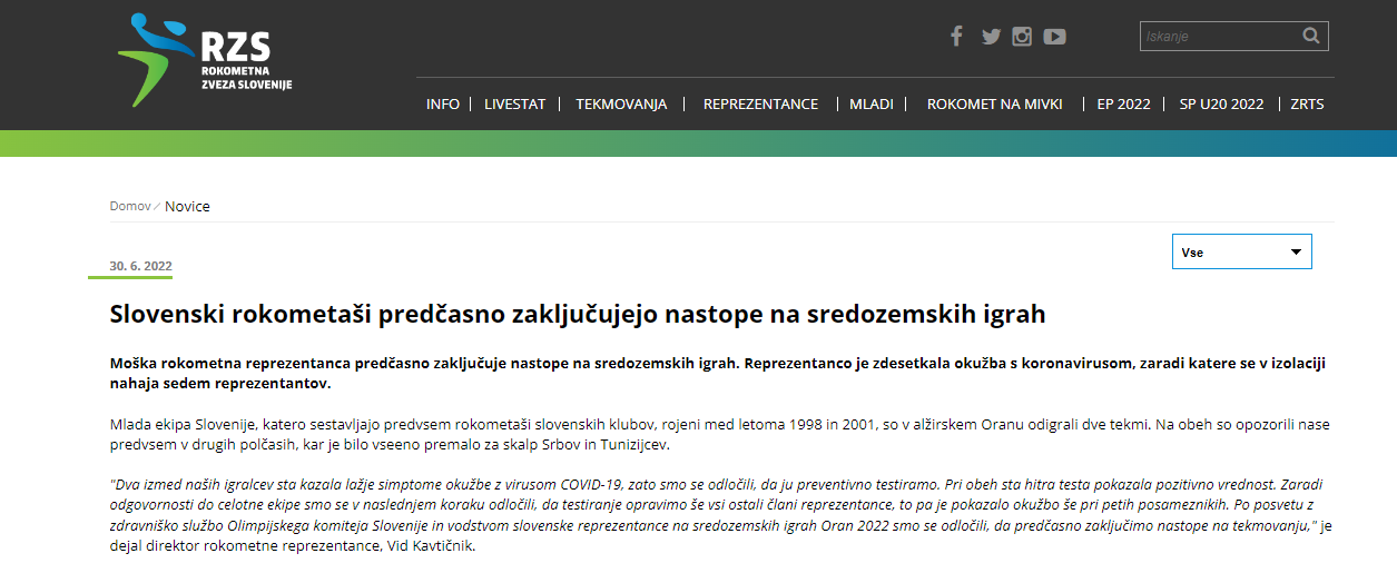 وحسب ماورد في الموقع الرسمي للإتحادية السلوفينية لكرة اليد، فإن قرار الإنسحاب جاء بسبب إصابة عدد كبير من لاعبي منتخب سلوفينيا بفيروس كورونا.