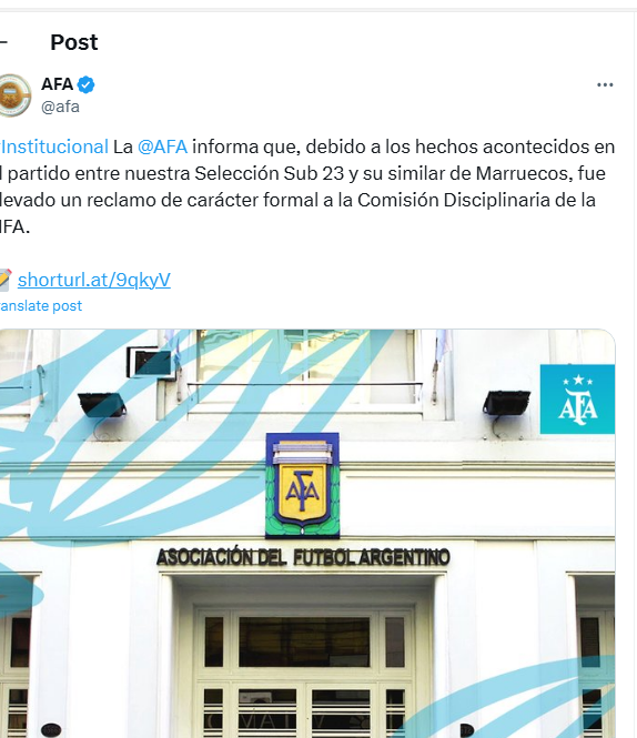 وقال الإتحاد الأرجنيتيني في بيان له، عبر الصفحة الرسمية على منصة “إكس أنه تقدم بشكوى من أجل اتخاذ التدابير التنظيمية اللازمة لمثل هذه الأحداث الكبيرة.