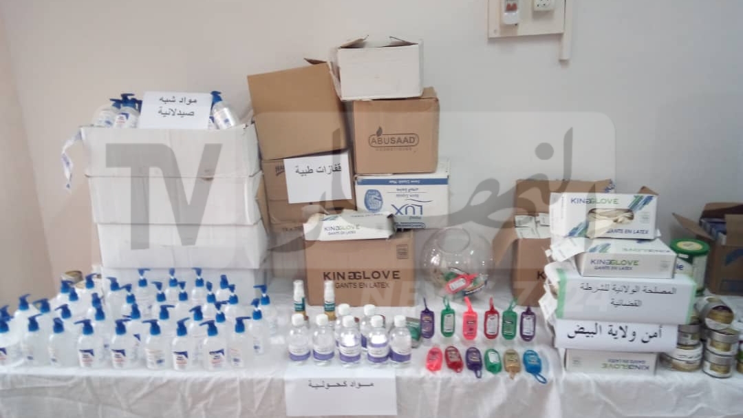 خلال العملية تم حجز كمية هامة من المحاليل المعقمة والمطهراتالكحولية إضافة إلى 2200 زوج من القفازات الطبية.