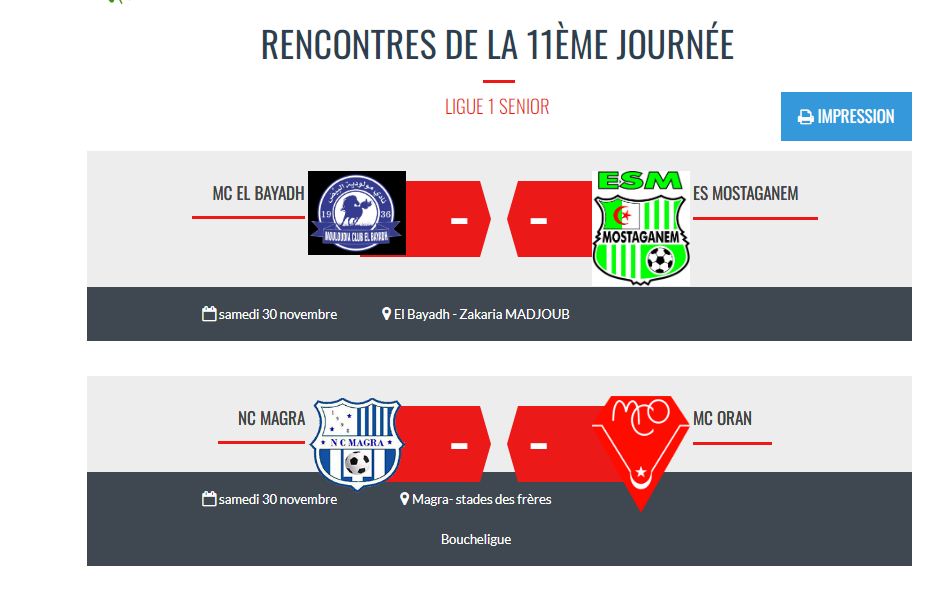 وستلعب 3 مواجهات يوم السبت القادم، 30 نوفمبر الجاري، يتقدمها لقاء مولوية البيض وترجي مستغانم، إلى جانب نجم مقرة والضيف مولودية وهران. واتحاد خنشلة أمام الضيف أولمبيك أقبو.
