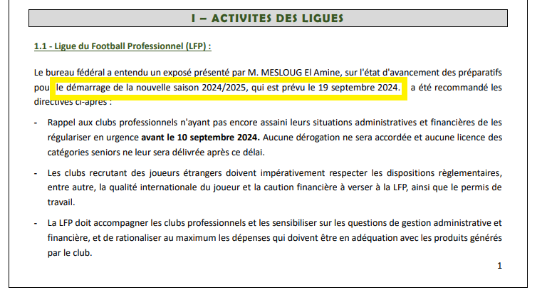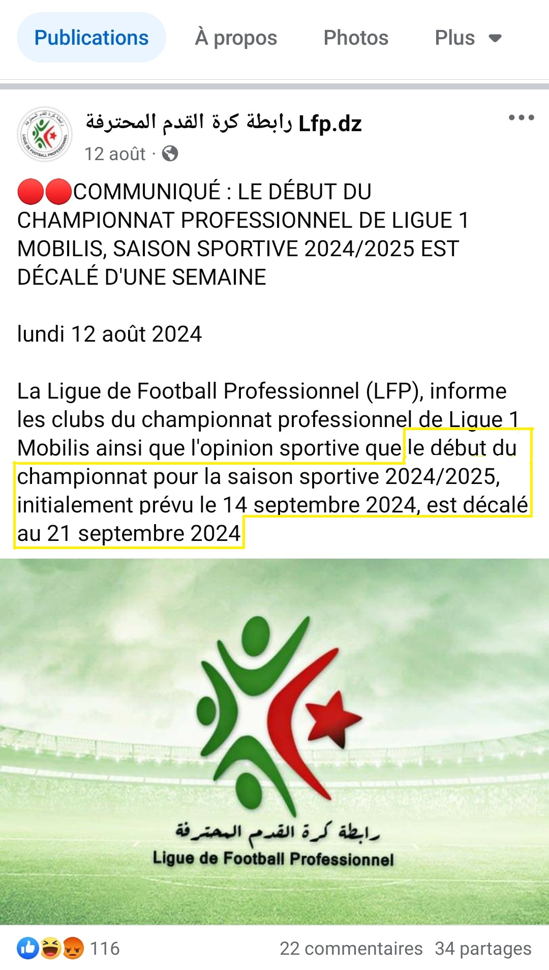 وكانت الرابطة المحترفة، قد أعلنت في وقت سابق، عن تأجيل موعد انطلاق البطولة المحترفة لموسم 2024-2025، من تاريخ 14 إلى 21 سبتمبر.