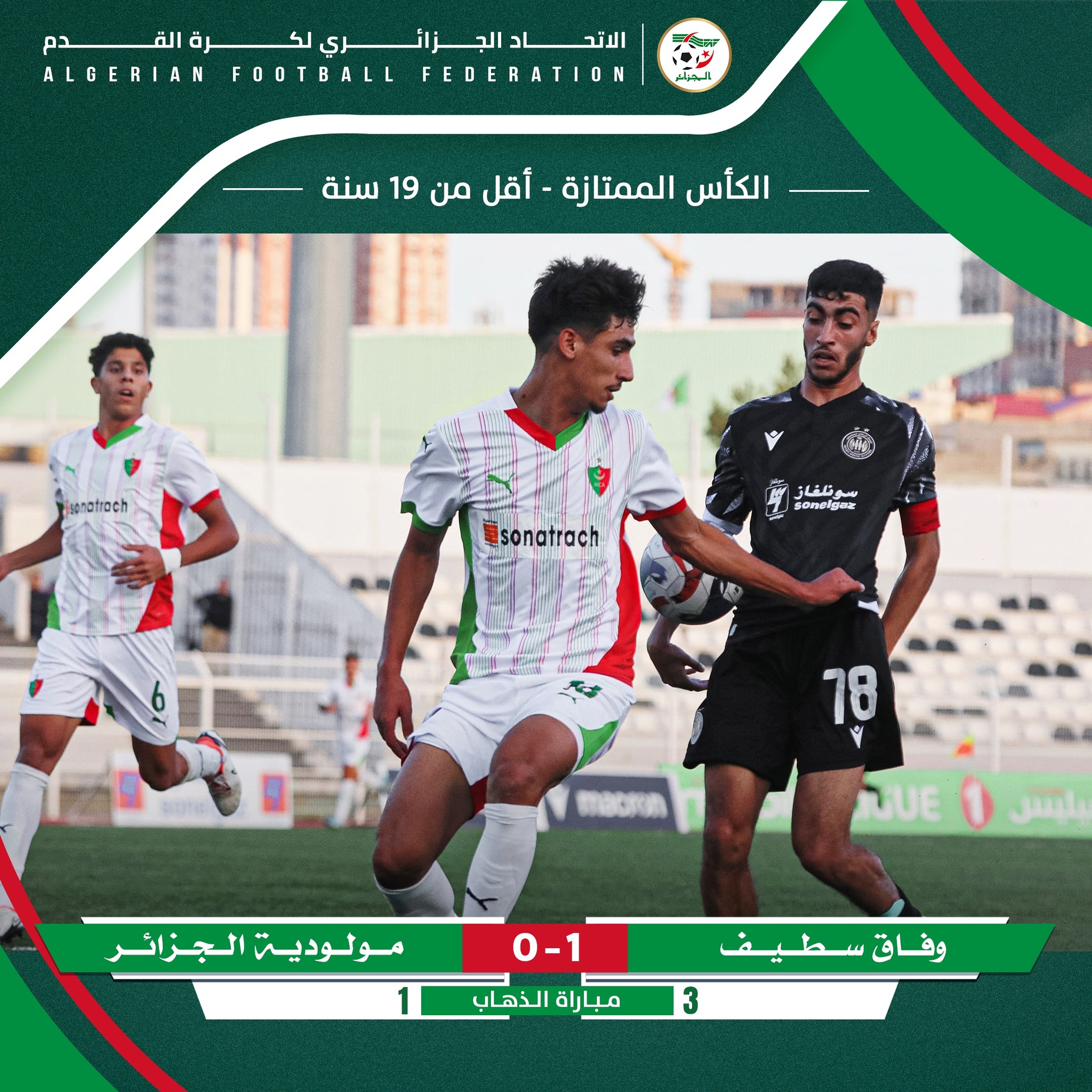 هنّأت الاتحادية الجزائرية لكرة القدم، اليوم الجمعة، فريق وفاق سطيف لأقل من 19 سنة بمناسبة تتويجه بالكأس الممتازة.