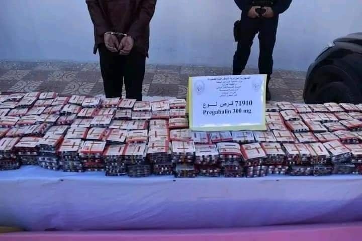 وحسب بيان المديرية العامة للأمن الوطني، فإن الكمية المحجوزة تقدر بـ 71910 قرص مهلوس من نوع بريقابالين 300 ملغ.