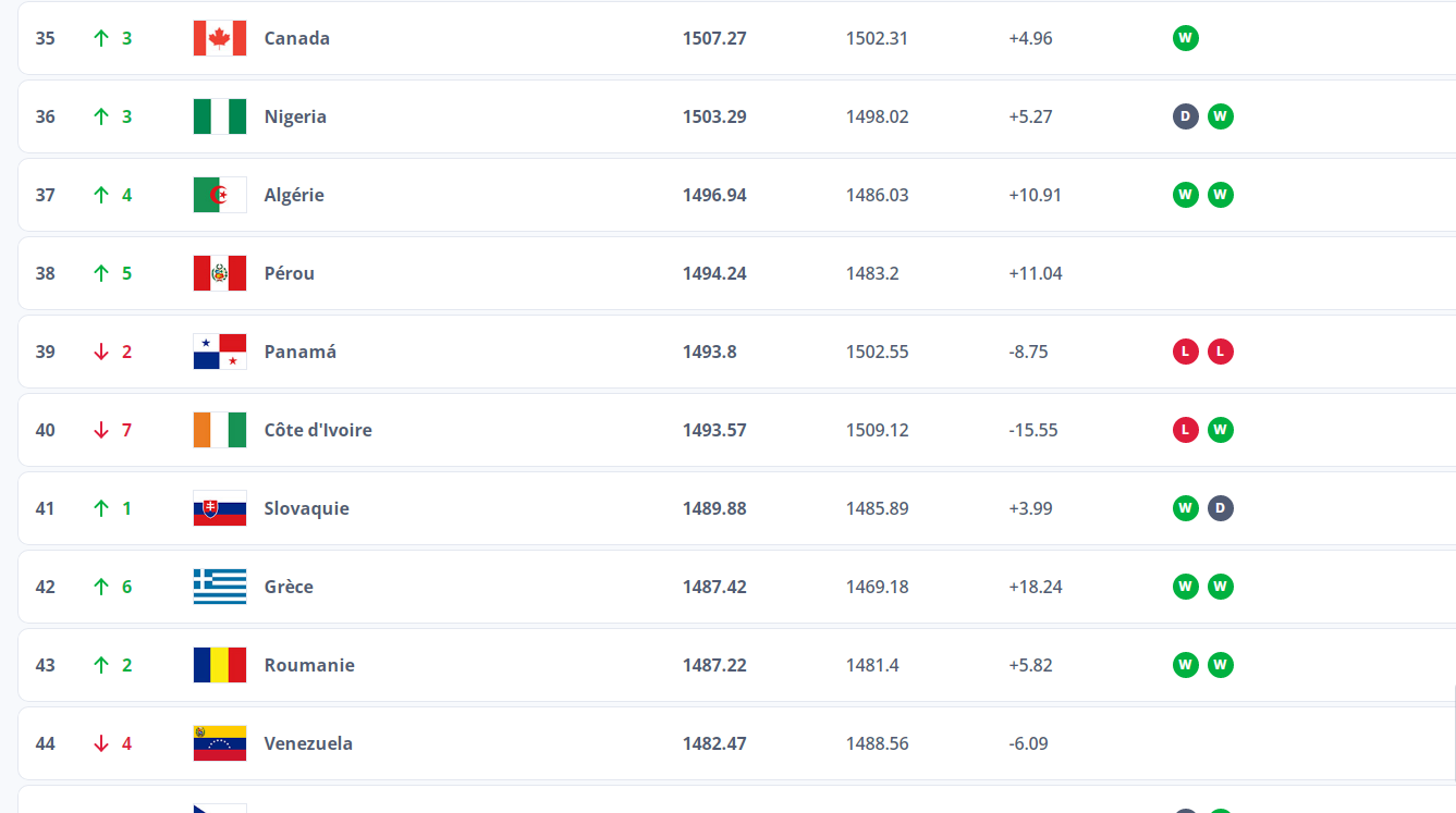 وكشفت “الفيفا”، اليوم الأربعاء، عبر موقعها الرسمي، تصنيفها الجديد للمنتخبات العاليمة، والذي شهد تقدم المنتخب الوطني بأربعة مراكز كاملة محتلا المركز الـ37 عالميا.