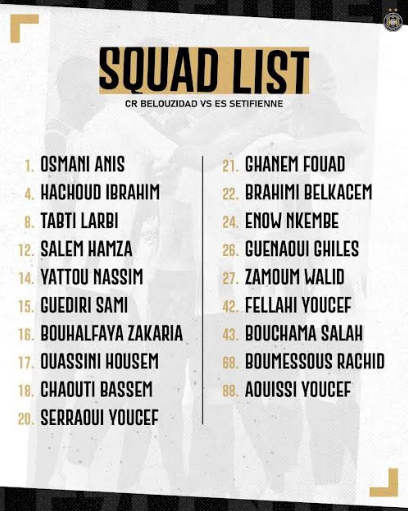 كما أعلن مسؤولو النادي السطايفي، غياب الثلاثي محمد زيتي، إدريس شعبي، بالإضافة لعبد المؤمن جابو، عن هذه المباراة بداعي الإصابة.
