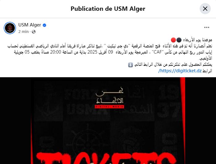 انطلاق بيع تذاكر لقاء اتحاد العاصمة وشباب قسنطينة