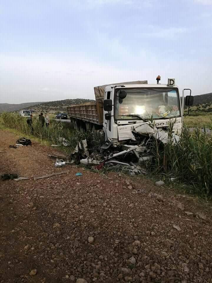 لقي قبل قليل شاب ثلاثيني حتفه في حادث اصطدام مباشر بين السيارة التي كان على متنها وشاحنة مقطورة على مستوى الطريق الولائي رقم 26 الرابط بين الشمرة والمعذر بولاية باتنة.