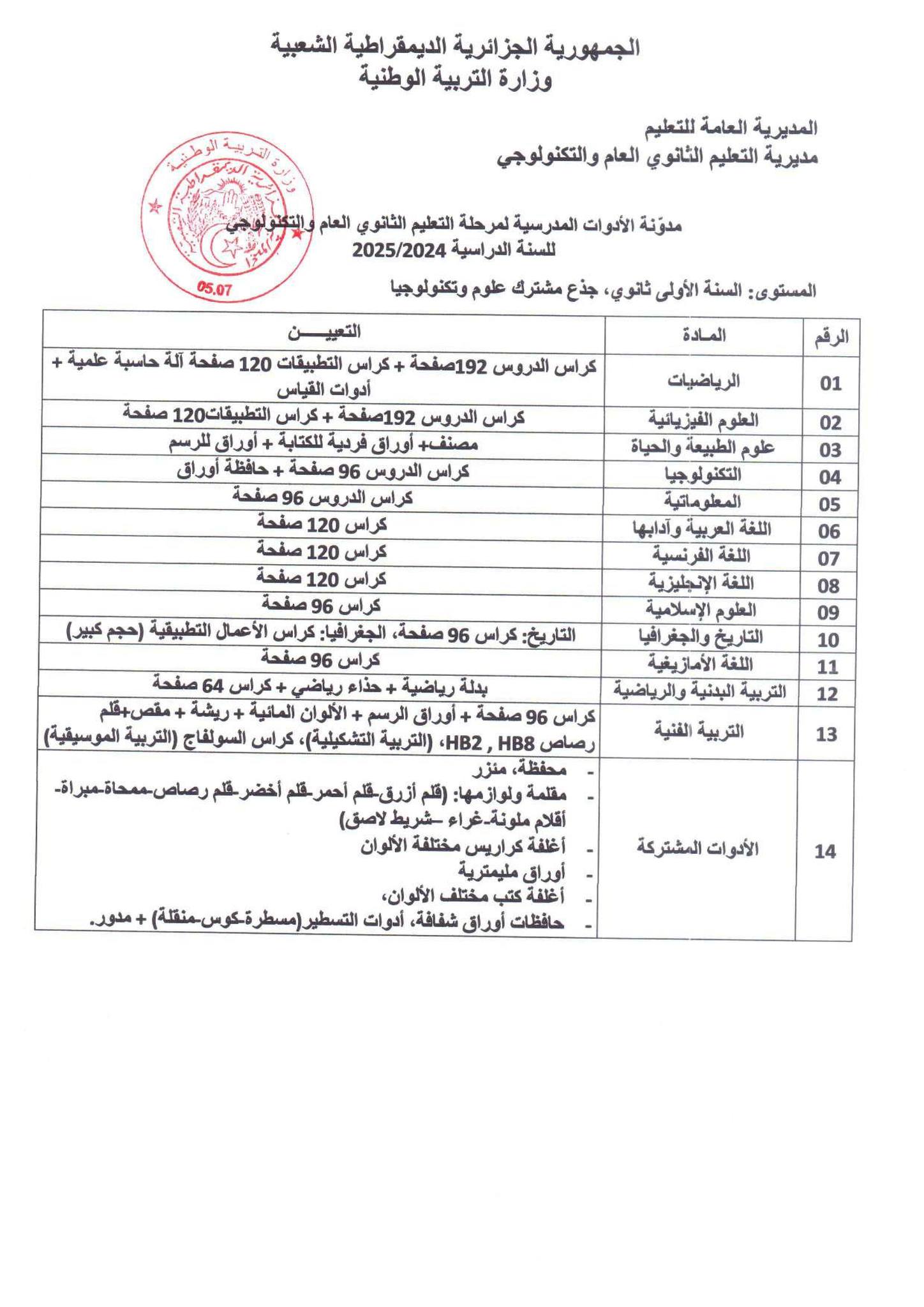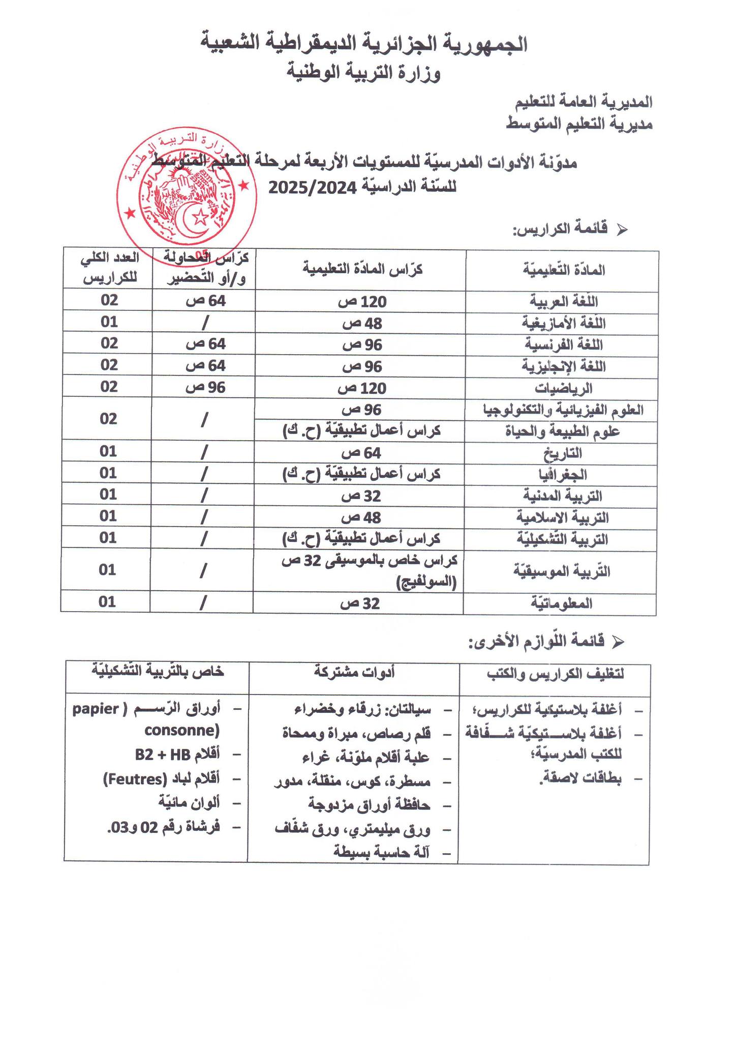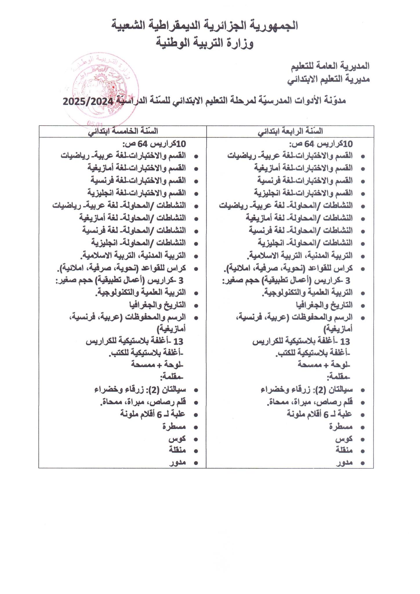 أفرجت وزارة التربية الوطنية عن القائمة الخاصة بالأدوات المدرسية، للسنة الدراسية 2024-2025،حيث أمرت الوصاية بضرورة نشرها على مستوى المؤسسات التربوية، كي يطلع عليها الأولياء.