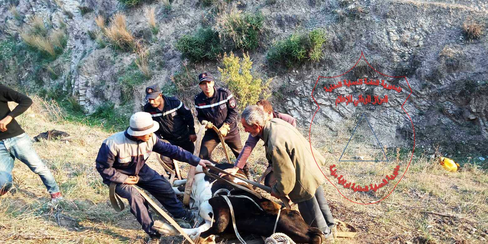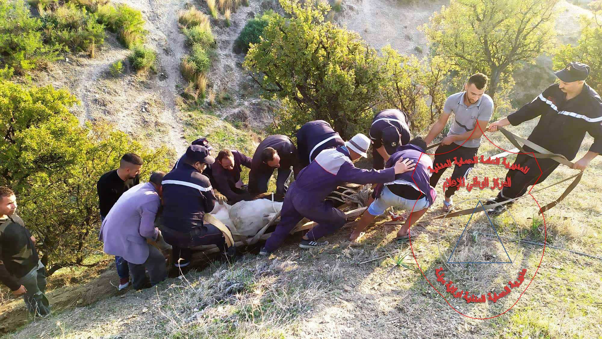 تم صبيحة اليوم إنقاذ بقرة وقعت داخل منحد خطير بمزرعة في بولاية ميلة.