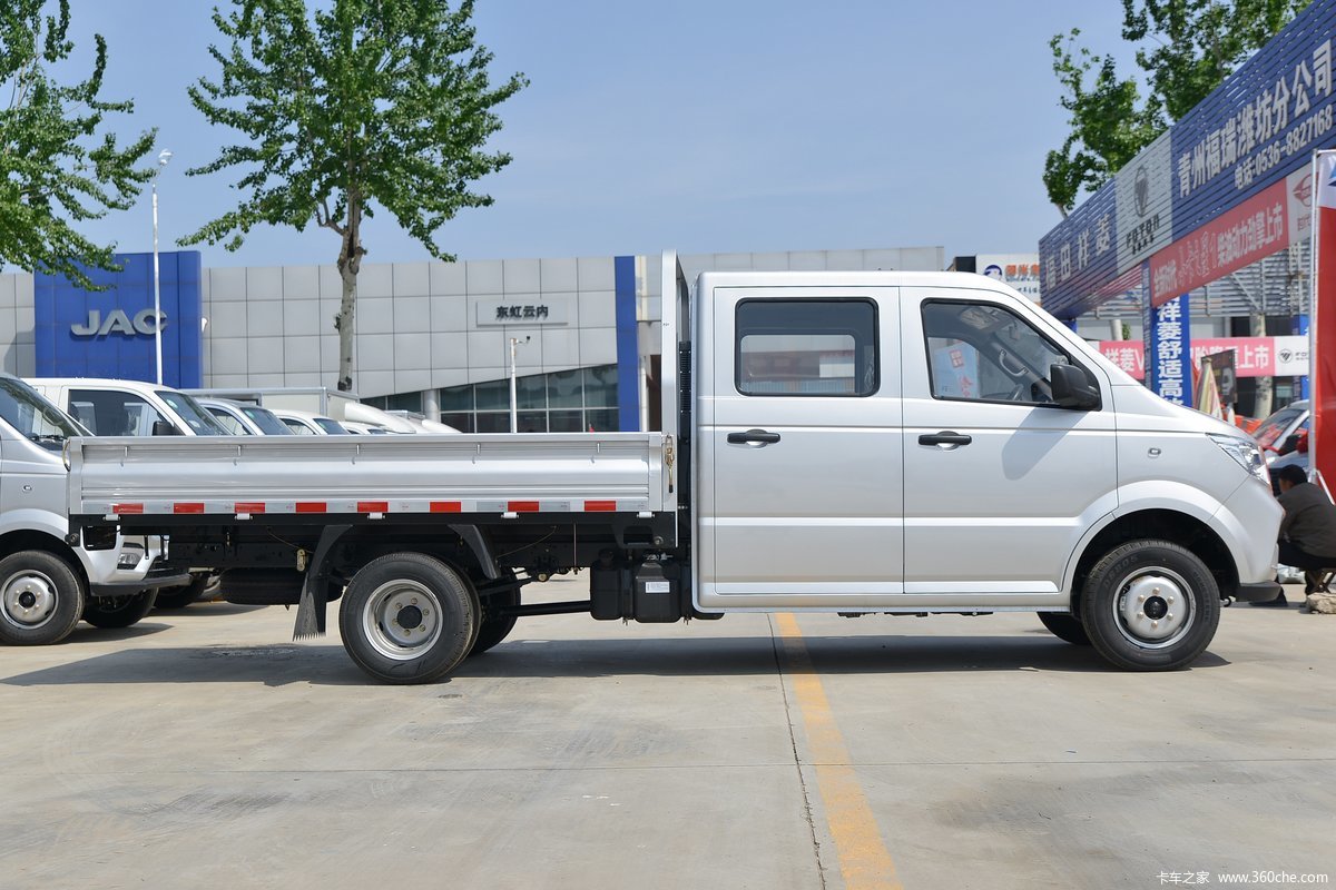 كما تحتوي الشاحنة الصغيرة على كابينة واحدة، عجلات خلفية واحدة وعجلات خلفية مزدوجة.