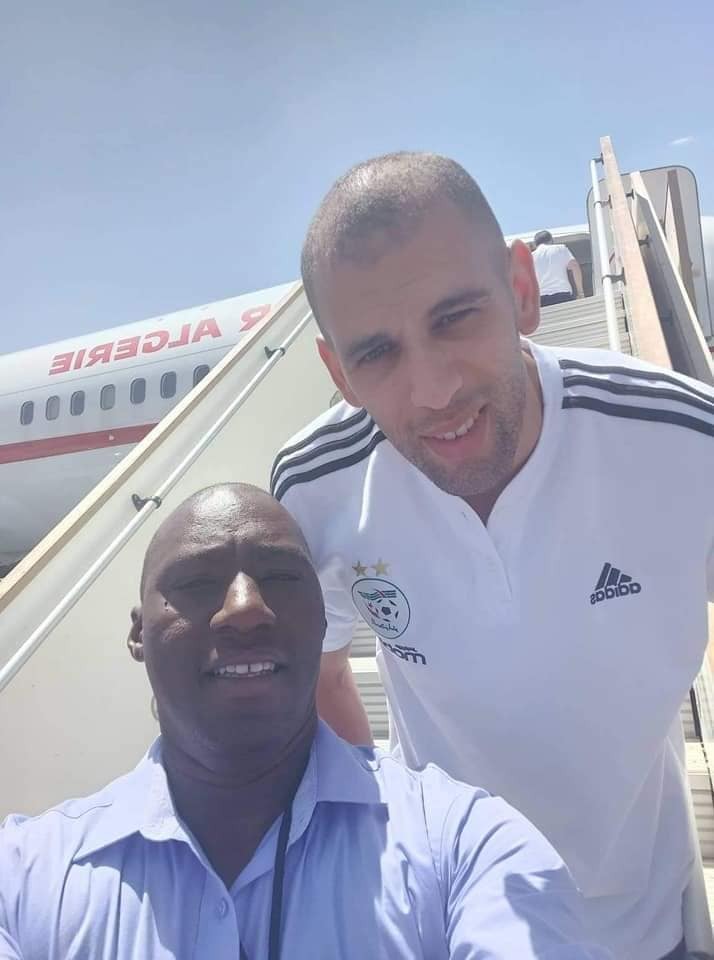 واستغل عمال مطار جانت، هذه الفرصة لأخذ صور تذكارية مع محاربي الصحراء، على غرار سليماني، الناخب جمال بلماضي، والبقية.