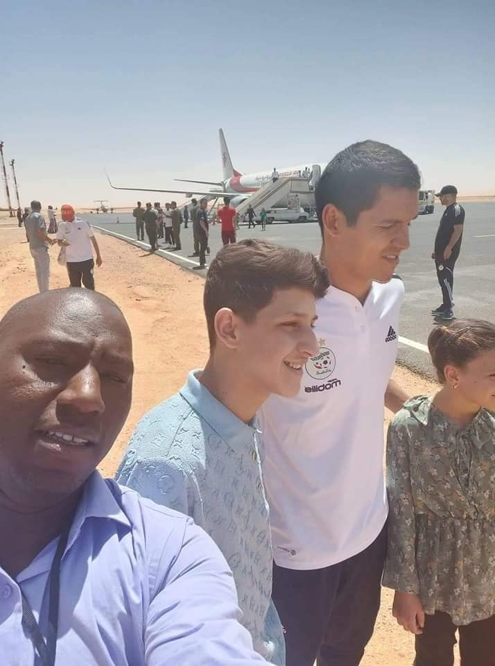 وبعد ساعات من مغادرتهم مطار العاصمة، حطت طائرة المنتخب الوطني، بمطار “تيسكا” بولاية جانت، للتزود بالوقود.