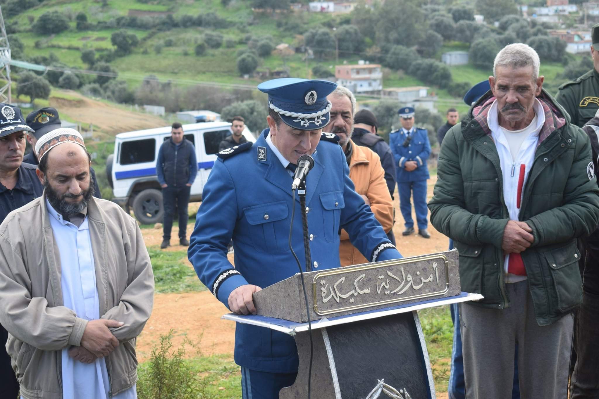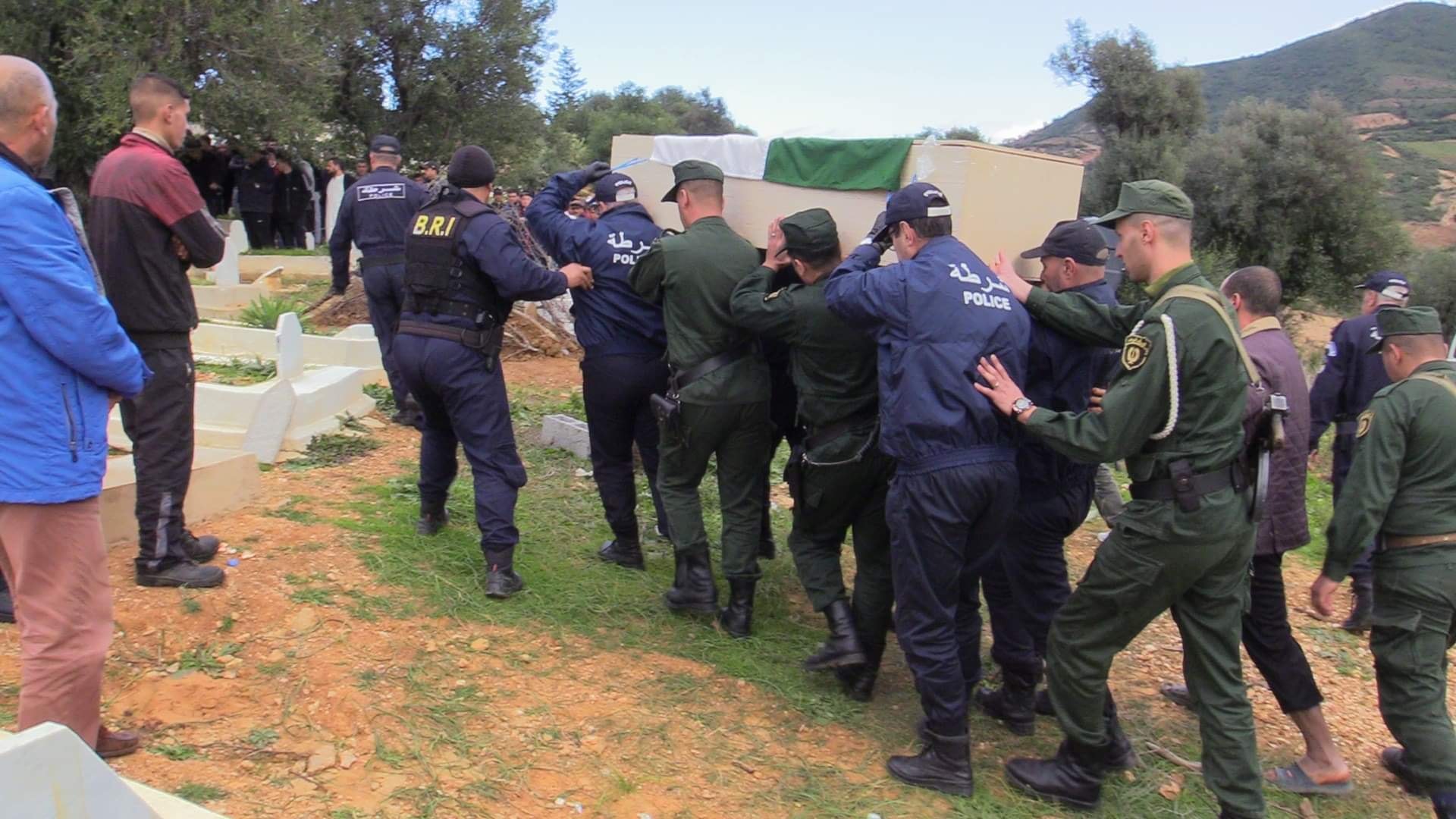 الجنازة  حضرتهاقوات الشرطة وزملاء الفقيد على رأسهم مدير الشرطة القضائية ممثلا عن المدير العام للأمن الوطني وكذا المفتش الجهوي للشرطة بالشرق ورئيس أمن ولاية سكيكدة.