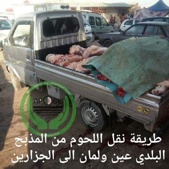 ويتم نقل لحوم الماشية التي ذُبحت بمذبح عين ولمان البلدي، عبر شاحنات هاربين الصغيرة، دون احترام لأدى شروط النظافة والسلامة.