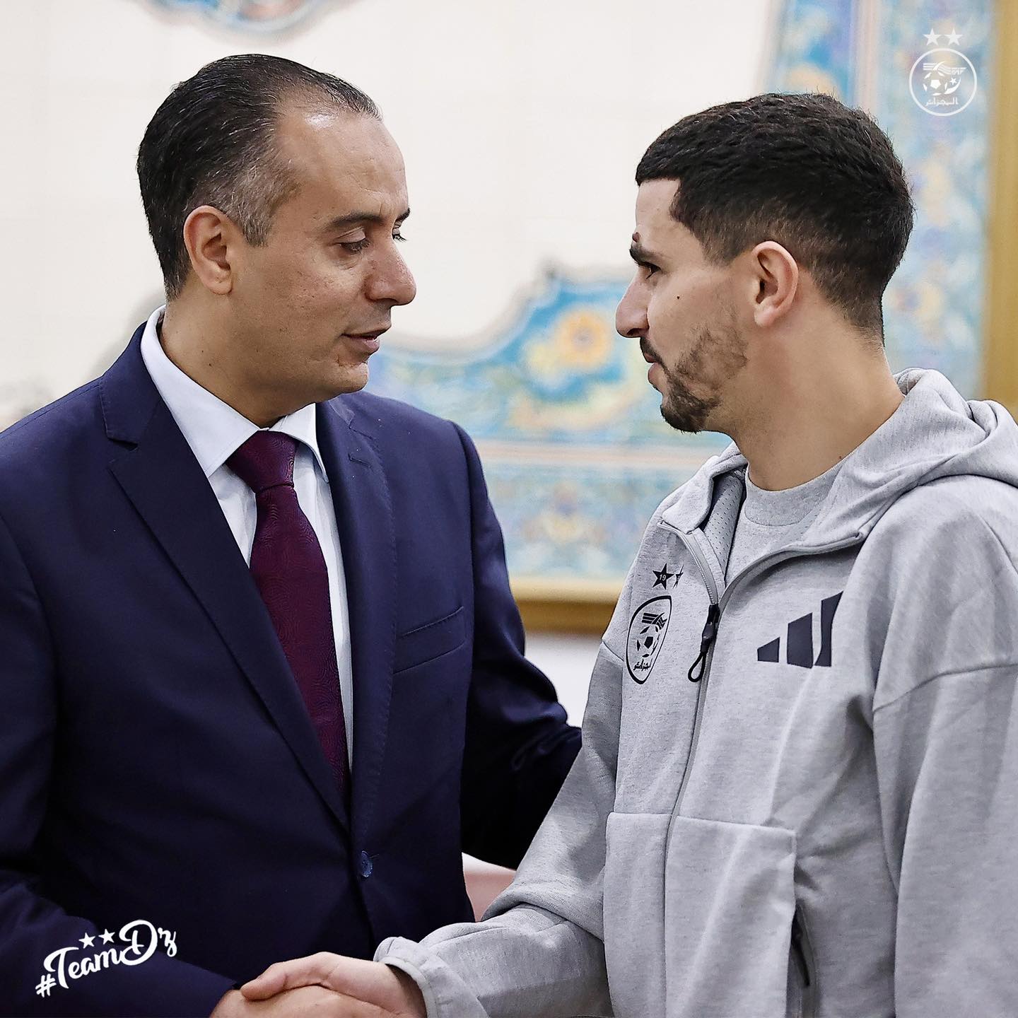 وحفّز رئيس الاتحادية الجزائرية لكرة القدم وليد صادي، أعضاء بعثة المنتخب الوطني، بمطار هواري بومدين في العاصمة. كما التقى بالناخب الوطني فلاديمير بيتكوفيتش وحفزه على العودة بنتيجة إيجابية.