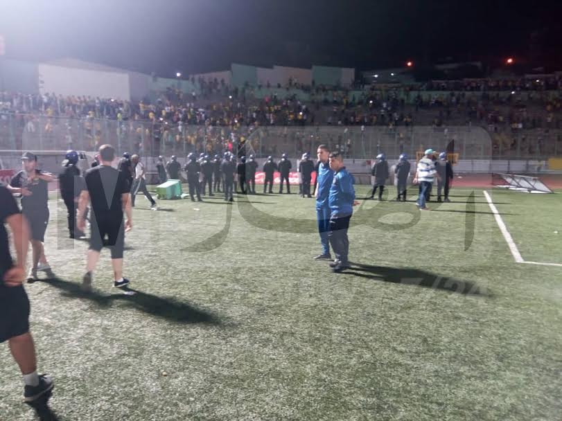 بالفيديو والصور.. أنصار الشبيبة يقتحمون أرضية الميدان والحكم يوقف اللقاء!