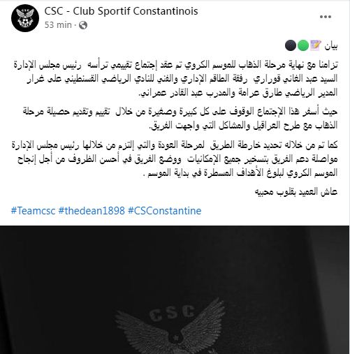 وكشفت إدارة شباب قسنطينة، بأن الاجتماع ترأسه رئيس مجلس الإدارة عبد الغاني قوراري. رفقة الطاقم الإداري والفني للنادي الرياضي القسنطيني على غرار المدير الرياضي طارق عرامة والمدرب عبد القادر عمراني.