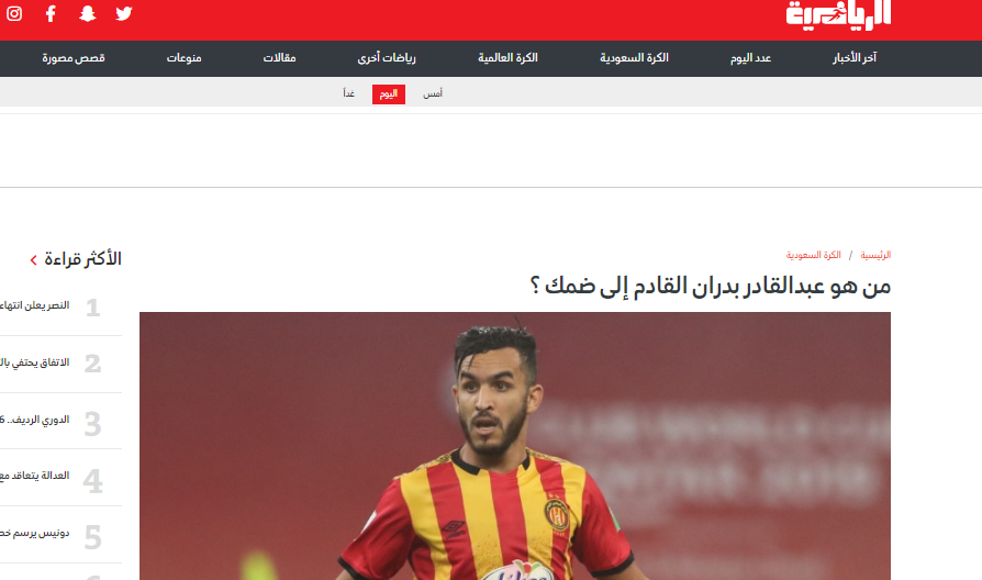 كشفت وسائل إعلام سعودية، عن اقتراب المدافع الدولي الجزائري ونادي الترجي التونسي، عبدالقادر بدران، من الاحتراف بالدوري السعودي للمحترفين.