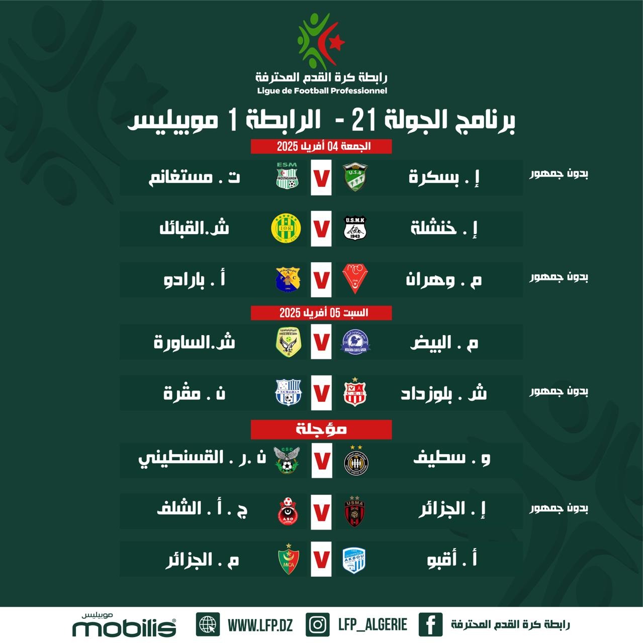 برنامج الجولة الـ21 من الرابطة المحترفة
