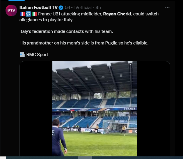 وكشفت قناة “إيطاليا فوتبول TV”، اليوم الخميس، أن الاتحادية الإيطالية استفسرت عن وضعية ريان شرقي وربطت الاتصال مباشرة مع أسرته، قصد جس نبض ابنها للانضمام إلى منتخب الأتزوري، بما أنه يحمل الجنسية الايطالية.