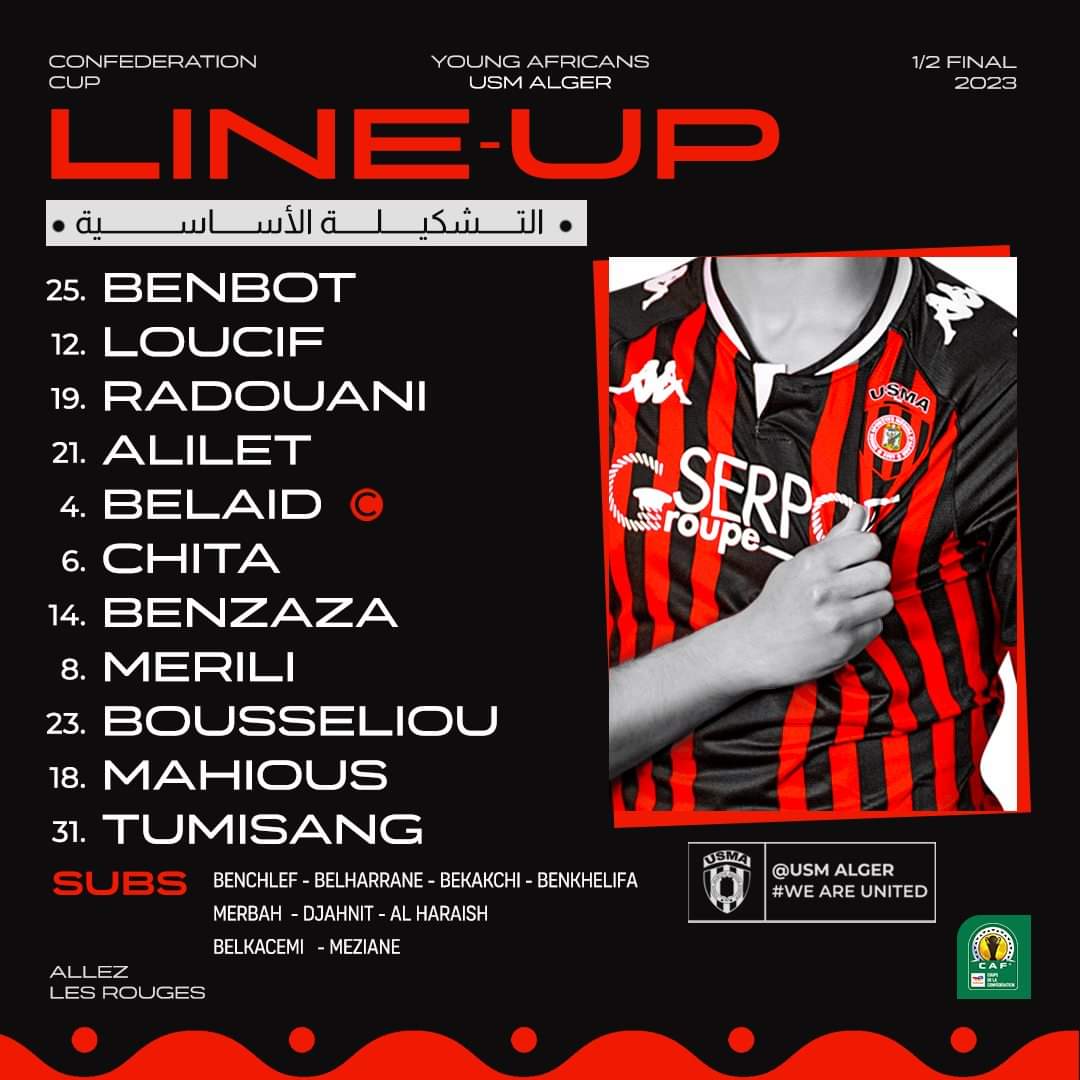 كشف مدرب اتحاد العاصمة، عبد الحق بن شيخة. التشكيلة الأساسية التي سيعتمد عليها في مواجهة يويغ أفريكانز، برسم ذهاب نهائي كأس الكاف.