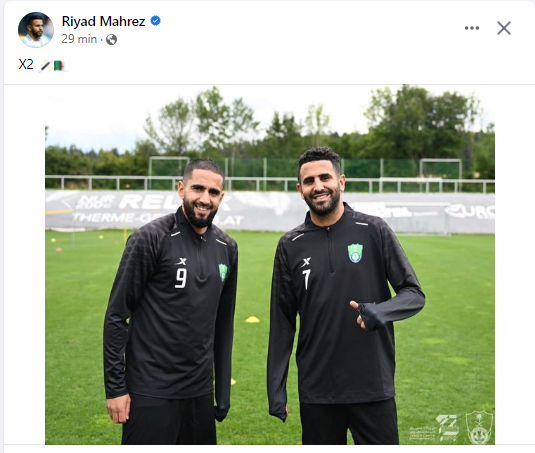 كما بادر رياض محرز، هو الآخر، إلى وضع صورة له رفقة بودبوز، عبر صفحته الرسمية على “الفايسبوك”، اليوم الجمعة، مرفقا إيّاها بالعلم الوطني و إيموجي، كاتبا في الوقت نفسه “X2”.