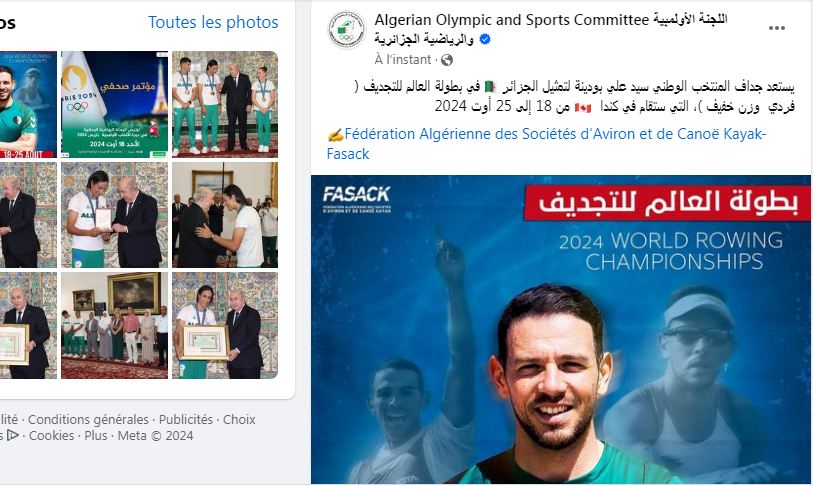 وكشفت اللجنة الأولمبية والرياضية الجزائرية، بأن جداف المنتخب الوطني. يستعد لتمثيل الجزائر، في بطولة العالم للتجديف ( فردي وزن خفيف)، المقررة ما بين من 18 إلى 25 أوت 2024.