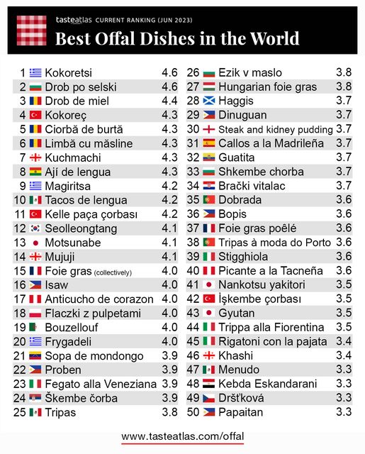 كما تضمنت القائمة، طبق “الكبدة الاسكندراني” المصري والذي جاء في المرتبة الـ48.