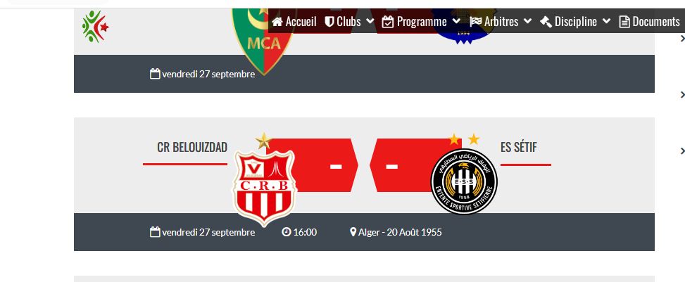 وكانت الرابطة، قد حددت في وقت سابق، يوم الخميس 26 سبتمبر الجاري، موعدا لإجراء، لقاء الشباب والوفاق بملعب 20 أوت 55، بداية من الساعة 16:00.