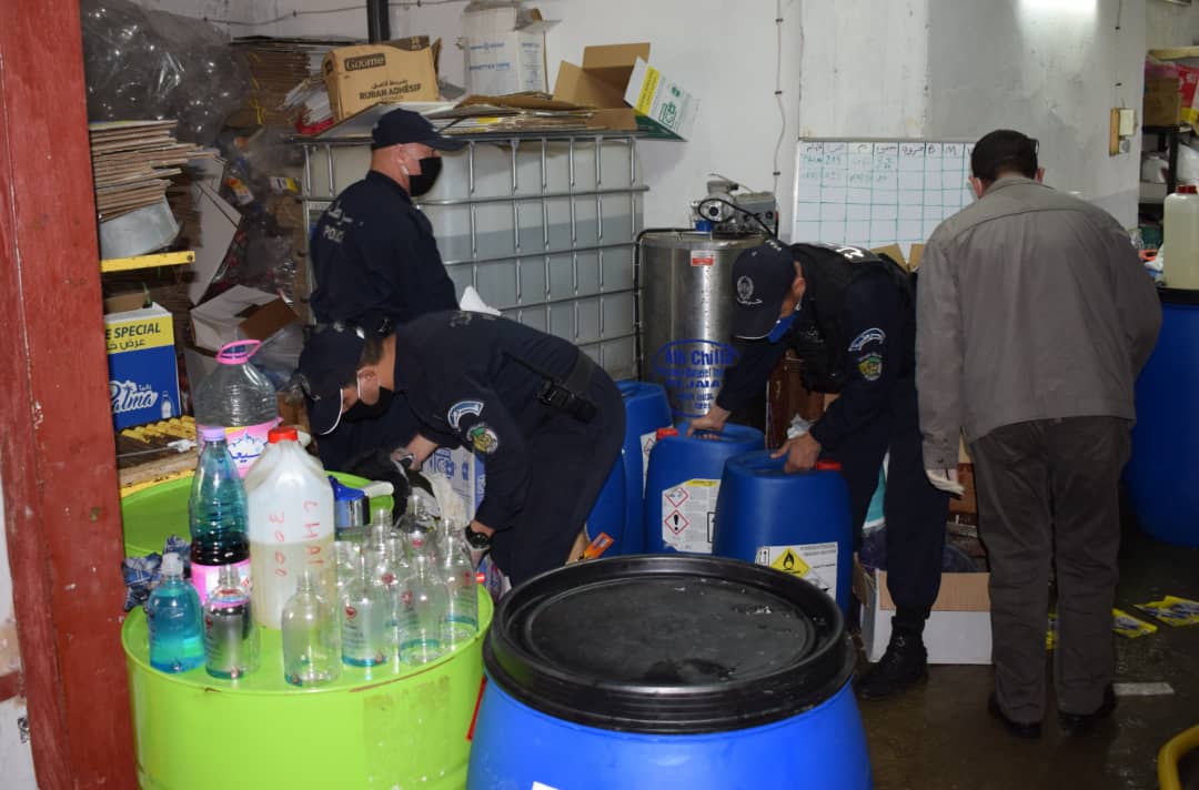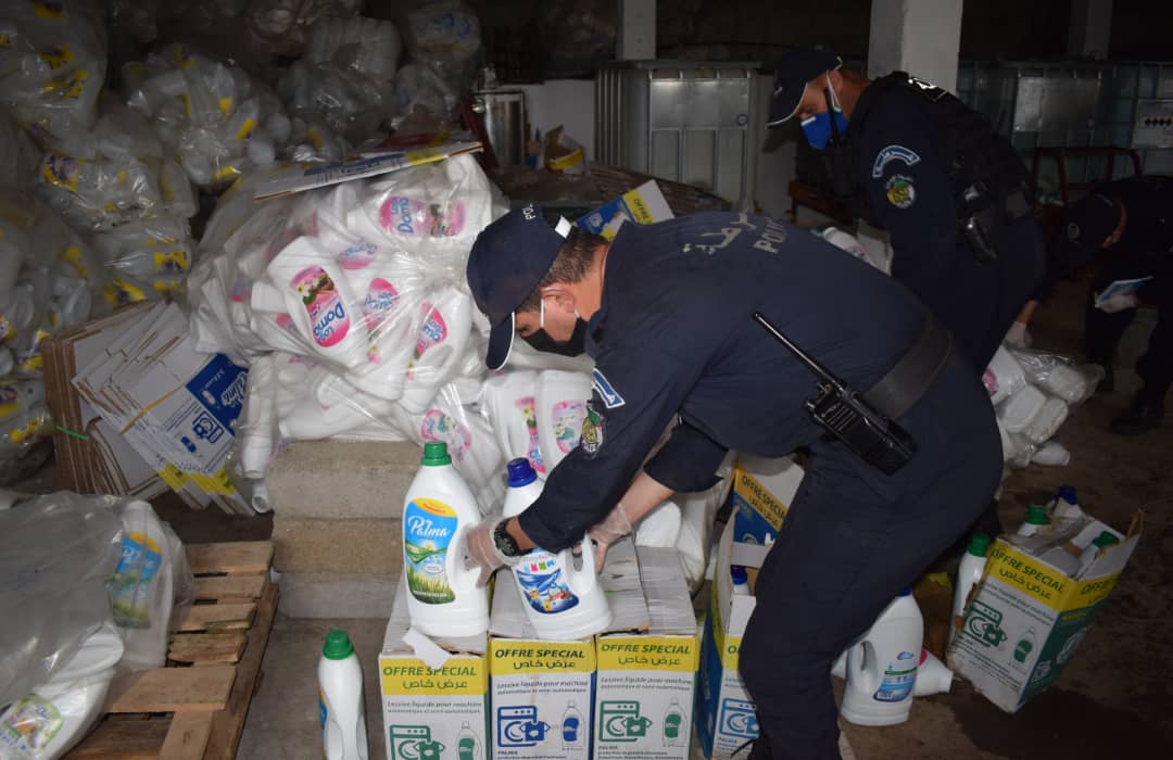 وتم حجز من خلال العملية، 8218 لتر من المواد الأولية الخام مجهولة المصدر، تدخل في صناعة مواد التنظيف، و2342 لتر سائل مطهر للتنظيف، و1280 كلغ من مادة ملح اليود.