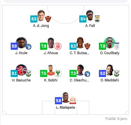 فيما عرفت تشكيلة كأس الكونفدرالية حضور اسمي الظهيرين الأيمن والأيسر لـ شباب قسنطينة، الفائز برباعية أمام برافوس الأنغولي، مداحي وبعوش. إذ حصل الأول على تقييم 10/9، وهو ثالث أفضل تنقيط في التشكيلة. فيما حصل بعوش، على تقييم 8.1.