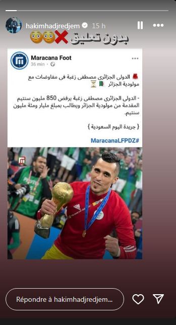 وهي المعلومات التي دفعت بحاج رجم. لإعادة نشر ذلك المنشور عبر خاصية “ستوري” على حسابه في “أنستغرام” وأرفقه بعبارة “بدون تعليق”.