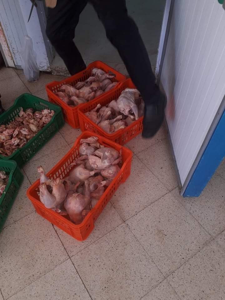 ذات المصالح وضعت يدها على نحو 100 كلغ من لحوم الدجاج و الأحشاء تزامنا مع إعداد محضر  سيتوج لاحقا بإحالته على القضاء.