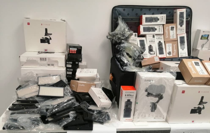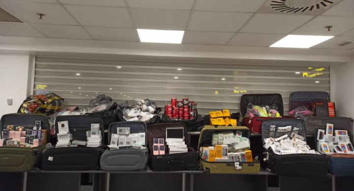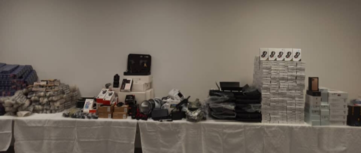 وتمثلت المحجوزات في 724 هاتف نقال ذكي؛ 152 لوحة رقمية،  85 خرطوشة سجائر و23 علبة تبغ للترشق. 537  ساعة يد من مختلف الأنواع؛  419 زوج نظارات شمسية و200 علبة نظارات شمسية فارغة، 8040 مصباح سيارات.