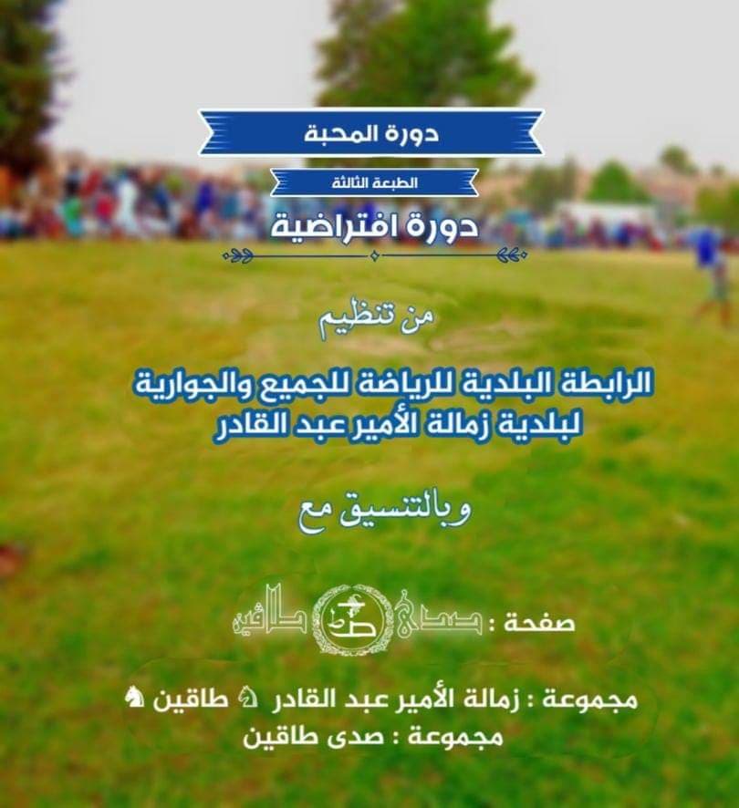 يذكر أن “دورة المحبة” بزمالة الأمير عبد القادر “طاقين”، لولاية تيارت، هي منافسة في كرة القدم، تجرى كل سنة بالملعب البلدي، وتلم شمل كل أطياف المنطقة.