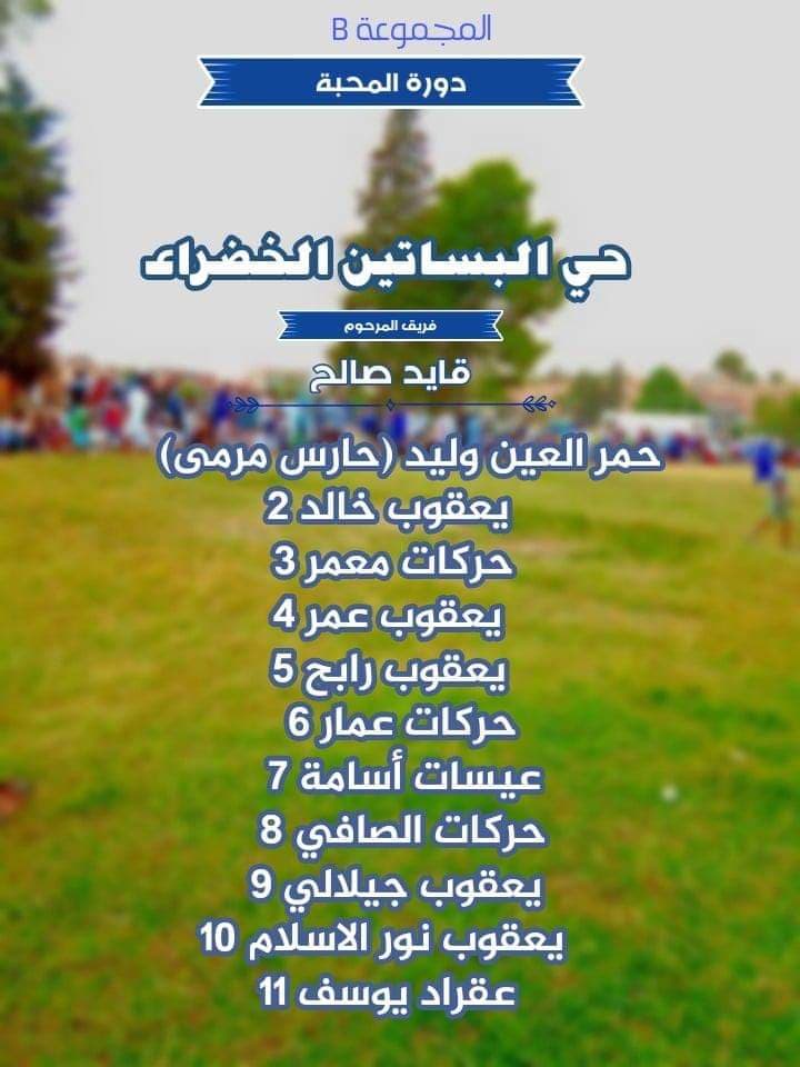 وتم تشكيل فرق تمثل كل أطياف المنطقة، مع منحها أسماء شخصيات متوفين من المنطقة، وستم وضع تشكيلة كل فريق على “الفايس بوك” ليتم التصويت عليها، ليعود الفوز في الأخير للفريق الذي حصل على أعلى نسبة تصويت.