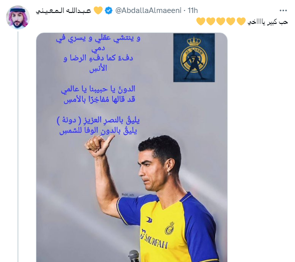 ولقيت هذه الخرجة من كريستيانو رونالدو، تفاعلا كبيرا من معجبيه عبر التعليقات، على غرار أحد المتابعين الذي مدحه في قصيدة شعرية.
