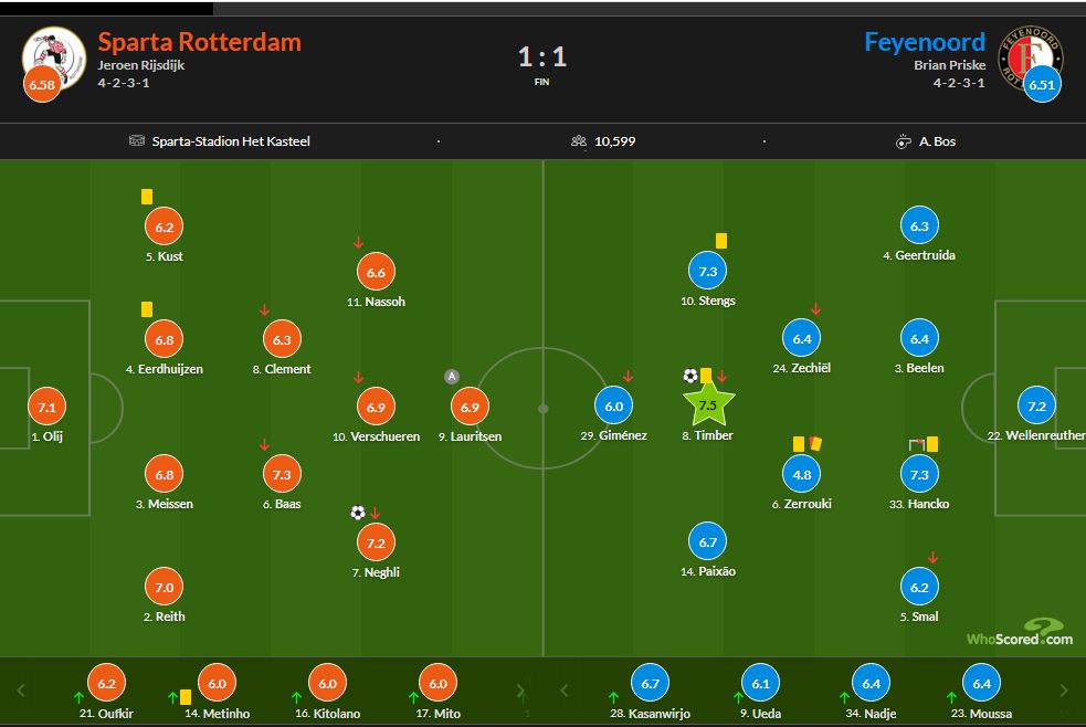 وتلقى لاعب الخضر، الذي شارك أساسيا في الداربي المندرج ضمن فعاليات الجولة 3 من الدوري الهولندي، إنذارا عند الدقيقة 33، قبل هدف من المنافس.