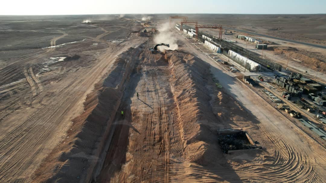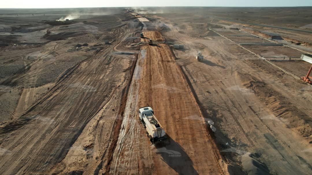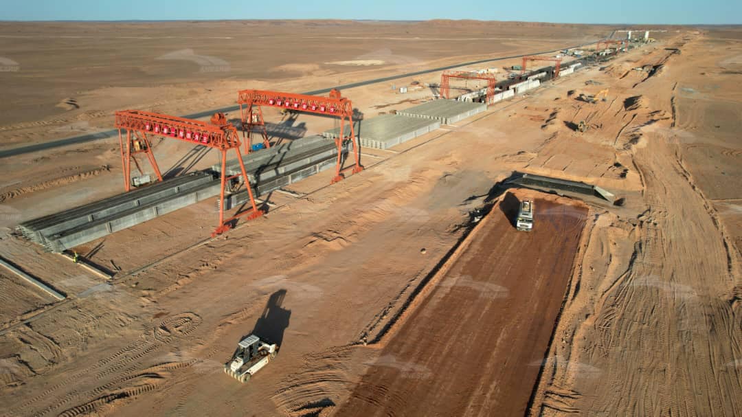 ونشرت الوكالة، صورا من قلب ورشات إنجاز الخط المنجمي الغربي للسكة الحديدية، وبالضبط من المقطع الثاني الرابط بين حماقير وأم العسل. الذي تتكفل بإنجازه شركتي كوسيدار للأشغال العمومية والشركة الصينية لإنجاز السكك الحديدية CRCC.