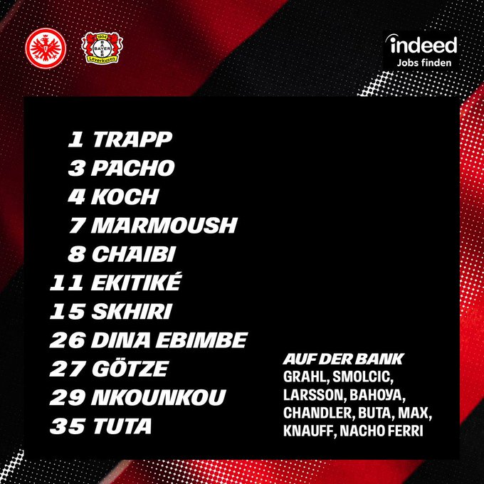 وسجل شايبي، تواجده ضمن التشكيلة الأساسية لناديه آنترخت فرانكفورت، والتي تم الكشف عنها عبر الحساب الرسمي للفريق على منصة “X”.