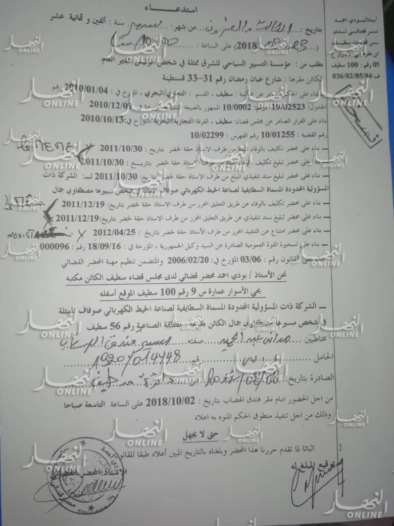 لترفع عليه مرة أخرى نفس الجهة المتمثلة في مؤسسة تسير الفنادق بالشرق قضية تعويض بمبلغ 50 مليار سنتيم على الاستغلال الغير مبرر قانونا .